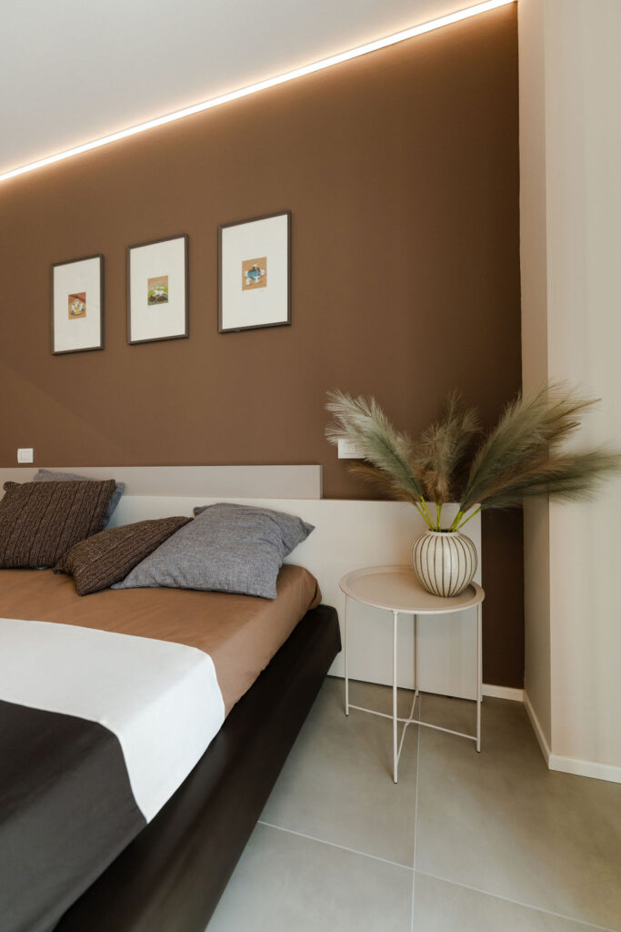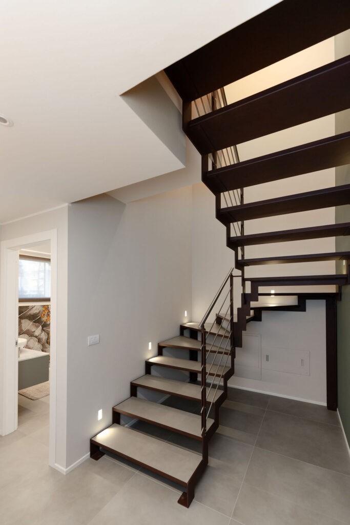 La cucina, cuore pulsante della casa, è stata studiata per garantire massima efficienza negli spazi, con elementi integrati e una palette calda e accogliente. Nella zona living, materiali e tonalità si combinano per creare un’atmosfera rilassante e contemporanea, mentre la zona notte punta sul comfort senza rinunciare allo stile.