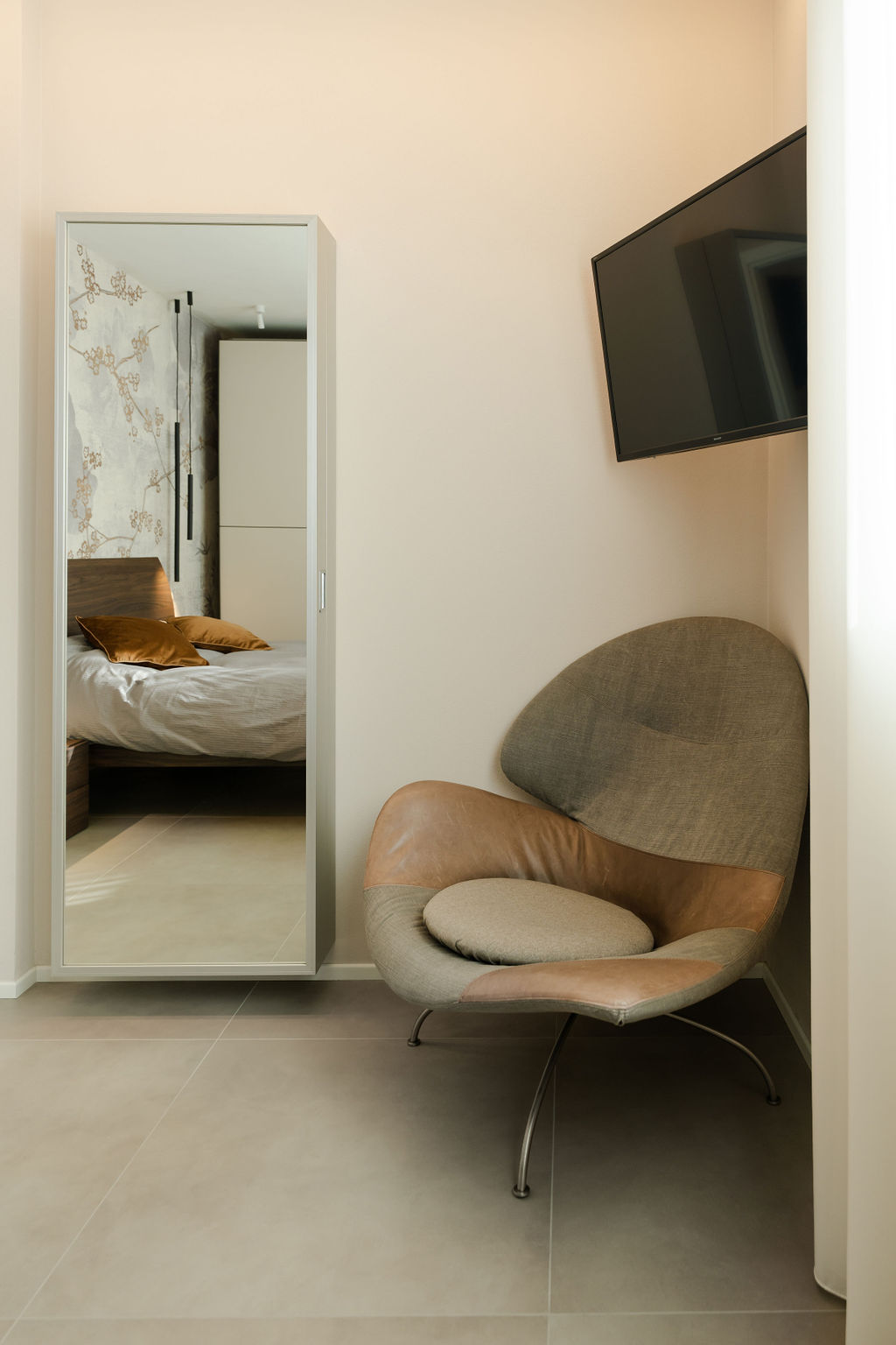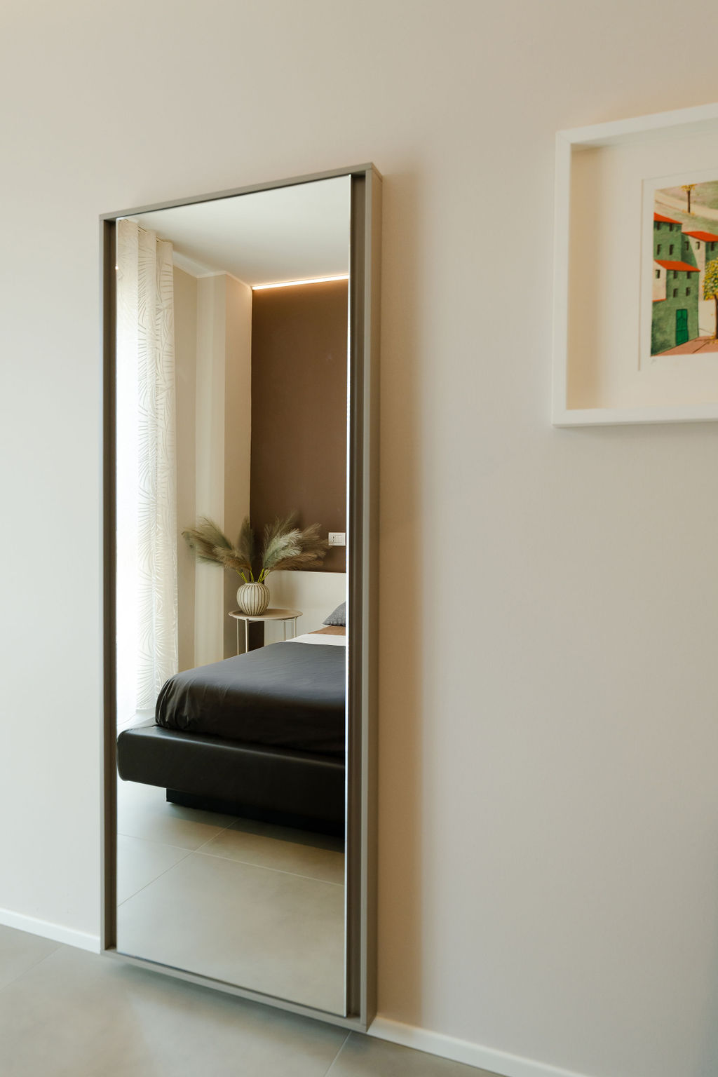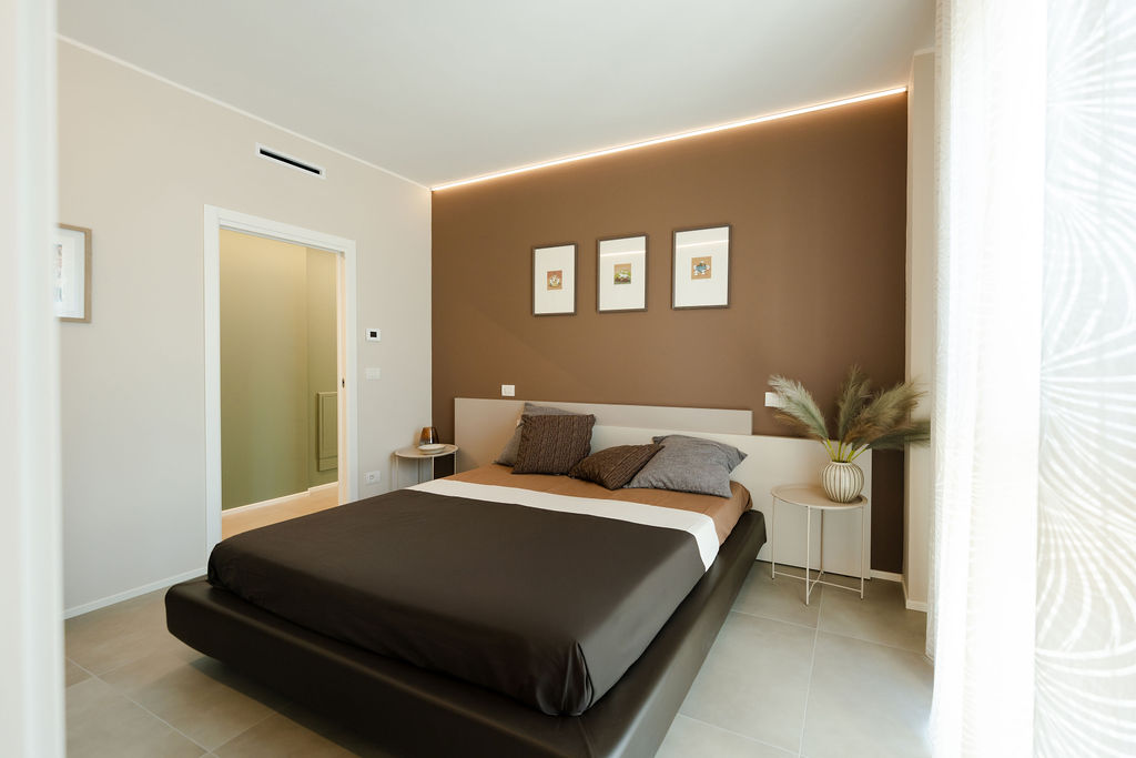 La cucina, cuore pulsante della casa, è stata studiata per garantire massima efficienza negli spazi, con elementi integrati e una palette calda e accogliente. Nella zona living, materiali e tonalità si combinano per creare un’atmosfera rilassante e contemporanea, mentre la zona notte punta sul comfort senza rinunciare allo stile.