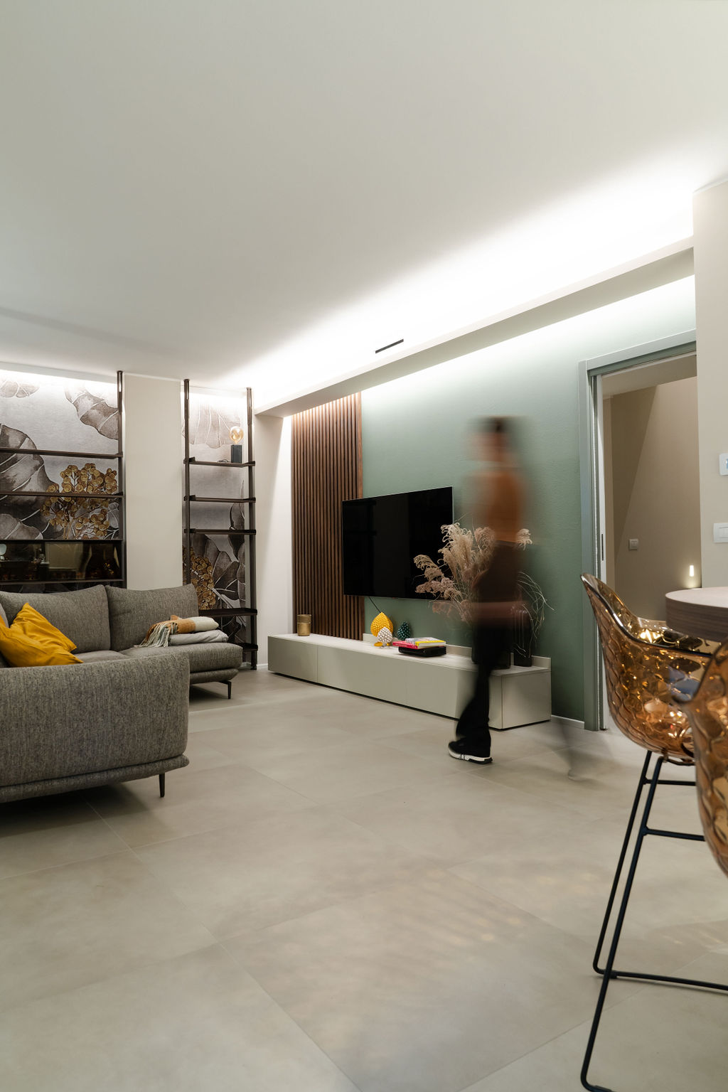 Il progetto nasce da un dialogo continuo con i clienti, per comprendere esigenze, abitudini quotidiane e desideri. Questa fase di ascolto ha permesso di sviluppare soluzioni personalizzate, lontane dagli schemi preconfezionati, capaci di riflettere davvero il modo di vivere della famiglia. L’intervento ha riguardato anche la scelta dei materiali, l’illuminazione e l’organizzazione degli spazi, dando vita a un ambiente armonioso, funzionale e accogliente, perfettamente cucito addosso a chi lo abita.