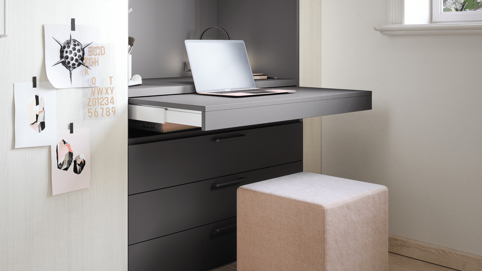 Le soluzioni componibili permettono di scegliere tra letti singoli o matrimoniali, scrivanie funzionali, armadi spaziosi e scaffalature pratiche, tutto in un design che unisce estetica e funzionalità.