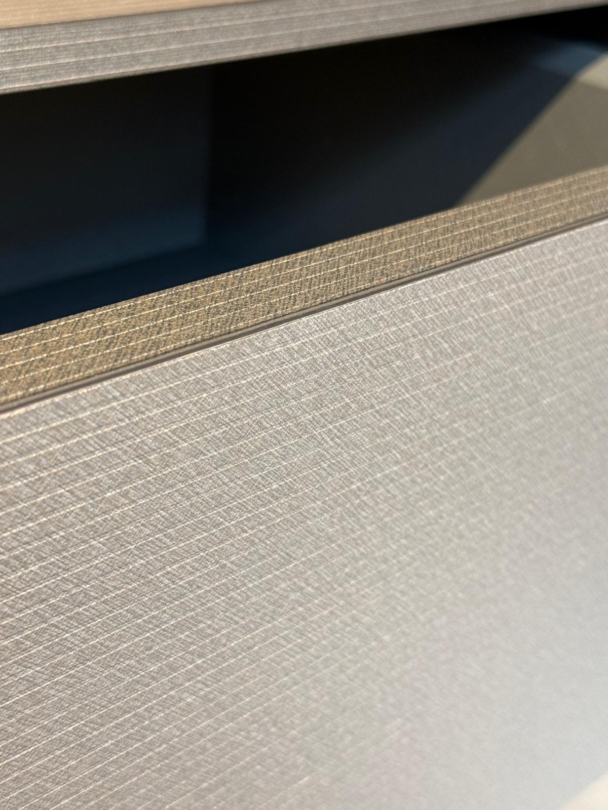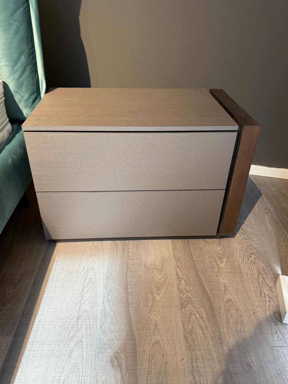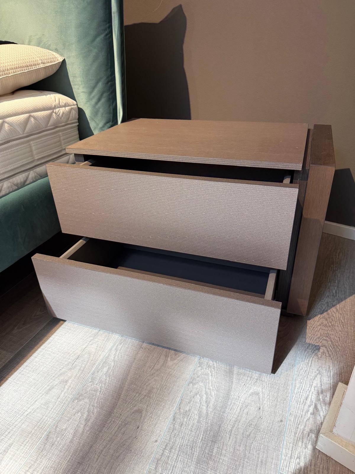 Comodino singolo in finitura paglia bronzo con dettagli in rovere termocotto