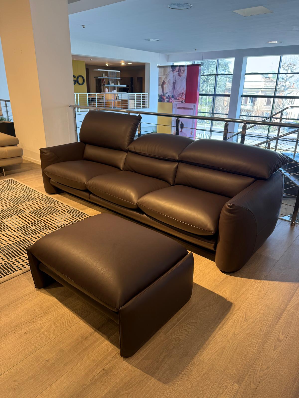 Divano maxi 3 posti in pregiata pelle naturale testa di moro.