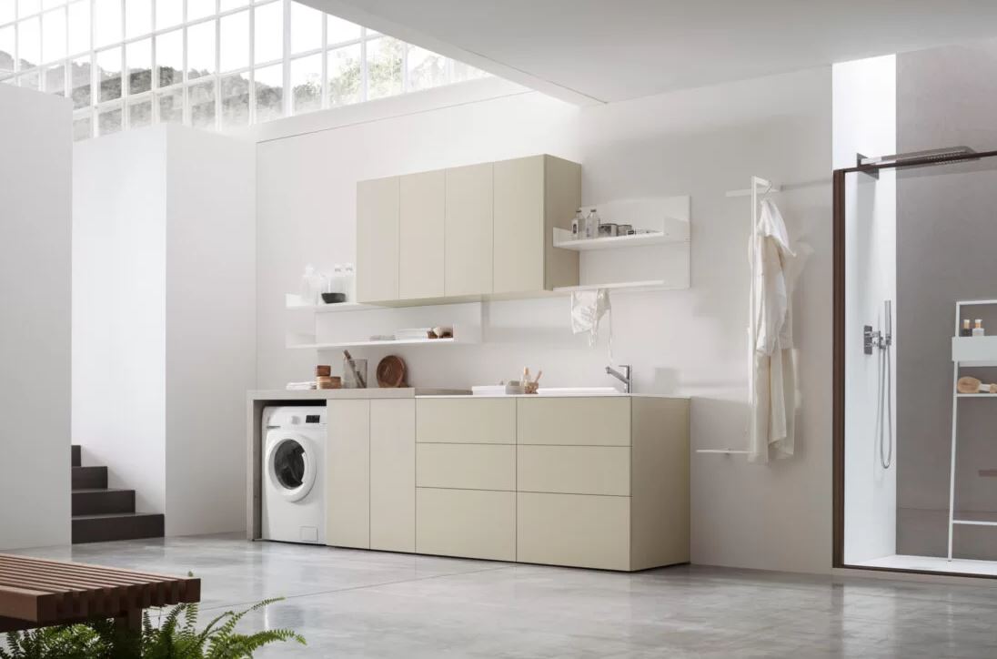 La lavanderia Arcom trasforma un ambiente tradizionalmente considerato secondario in uno spazio dal design curato e funzionale.