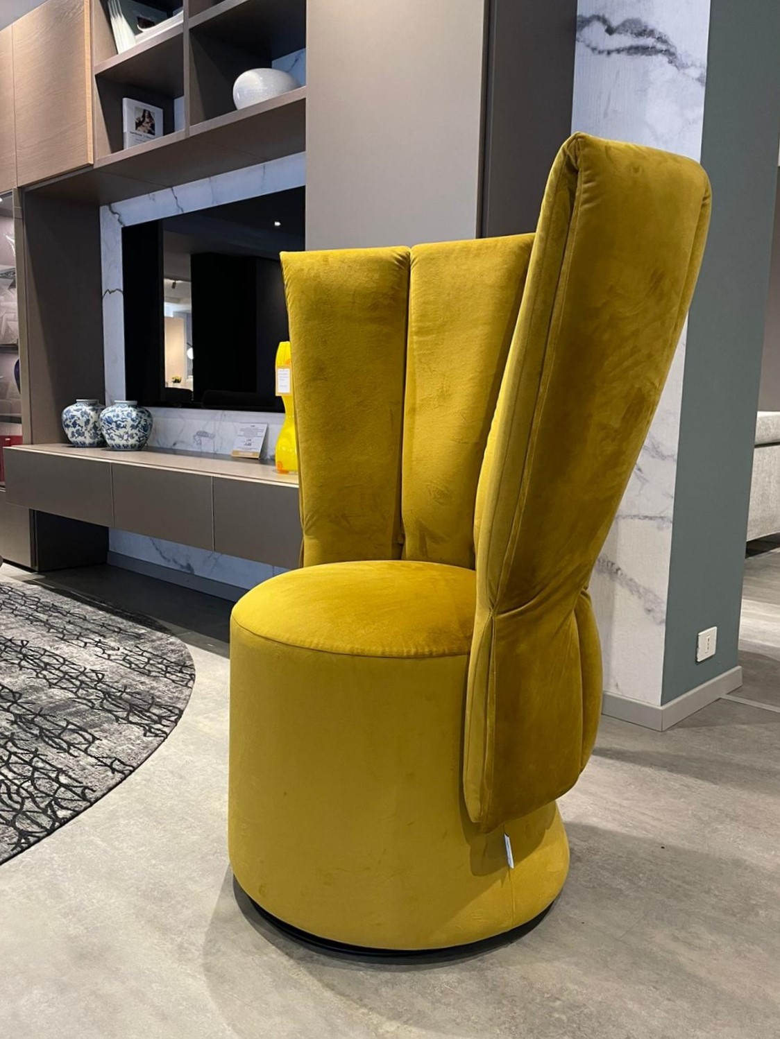 Poltrona alta con base girevole in tessuto di pregio “Dubai”